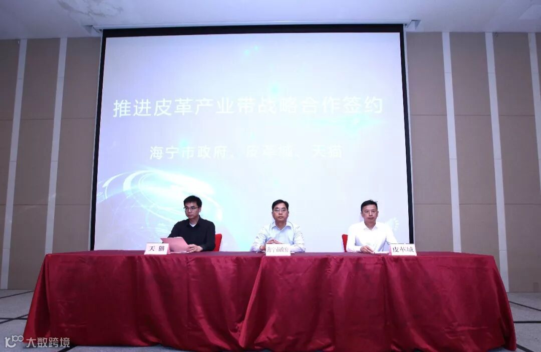 在大会现场,海宁市人民政府、海宁中国皮革城、浙江天猫技术有限公司举行了推进皮革产业带战略合作签约仪式,这体现了人民政府对海宁皮革产业带电子商务发展的重视。