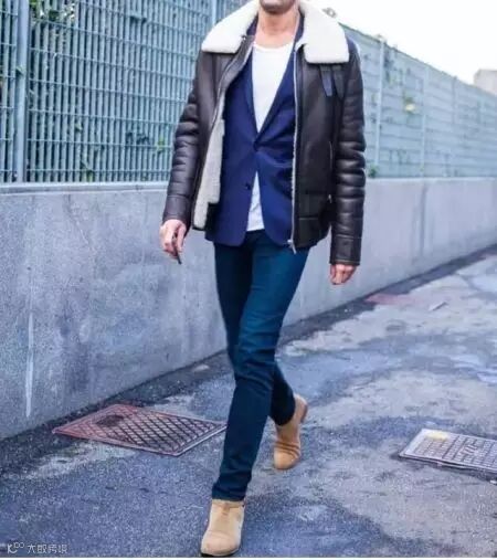 飞行员皮夹克。这种夹克一般在内衬和领子处都填充了羊毛,它最开始在二战时期被设计出来是为了给直升机飞行员保暖用的,所以它的保暖性能要比其他款式要好,样子也更加的厚重一些。