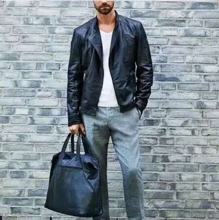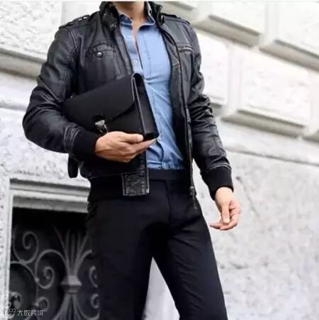 还有一些立领款式的皮夹克,这种款式比较的偏成熟,更适合一些商务男士的日常穿着。