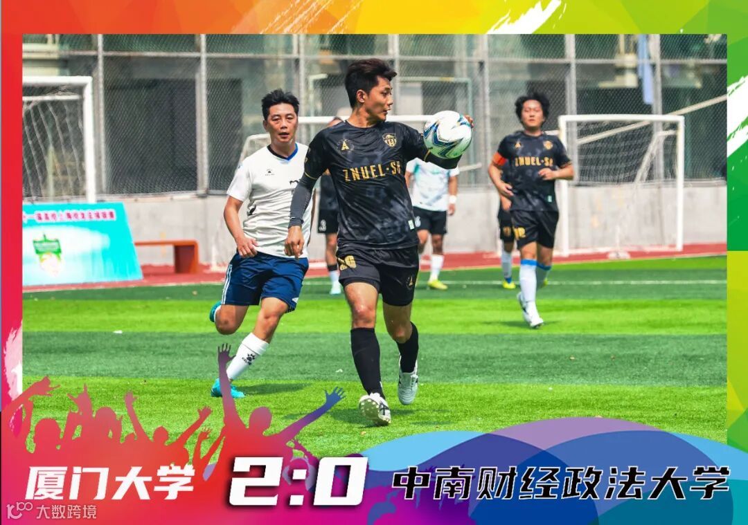卫冕冠军隆重出场,依然霸气十足,今年誓要卫冕成功,成就三冠伟业。中南财经政法虽然不被看好,但该队最大的特点就是不惧强敌,永不言败。上半场,卫冕冠军攻势如潮,试图尽早打破僵局,但中南财经政法稳固防守没有给对手机会,下半场,财经政法反客为主,也创造了几次攻势,然而压上进攻必然后防疏漏,他们首先是禁区内犯规送给对方点球,然后又被对方利用任意球机会连续攻门得手,遗憾地在比赛的尾声再次丢球,最终0:2丢掉了比赛。