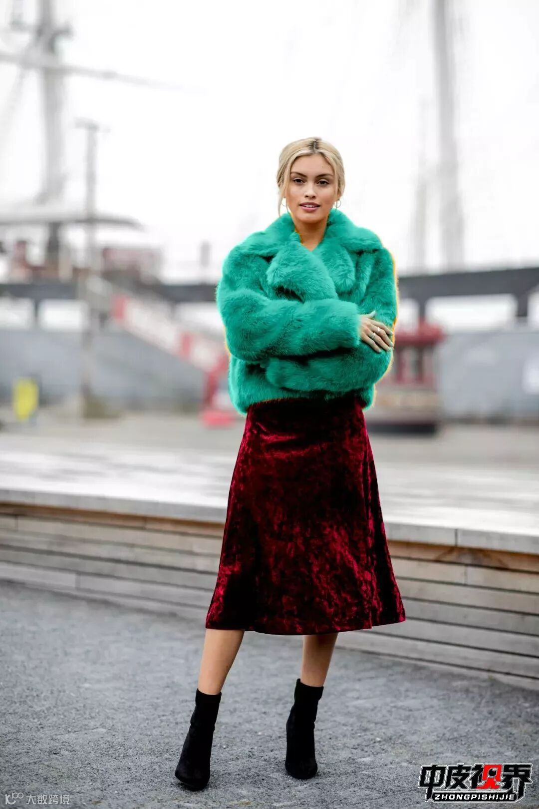 大胆张扬的亮色皮草绝对是寒冬街头
