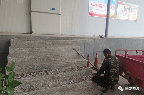 12月4日下午,大车修理厂的员工在抢修转运轮胎时损坏的台阶。