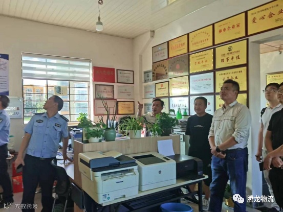 检查组一行仔细观看询问腾龙物流公司多来年努力取得的每一项奖励奖牌。