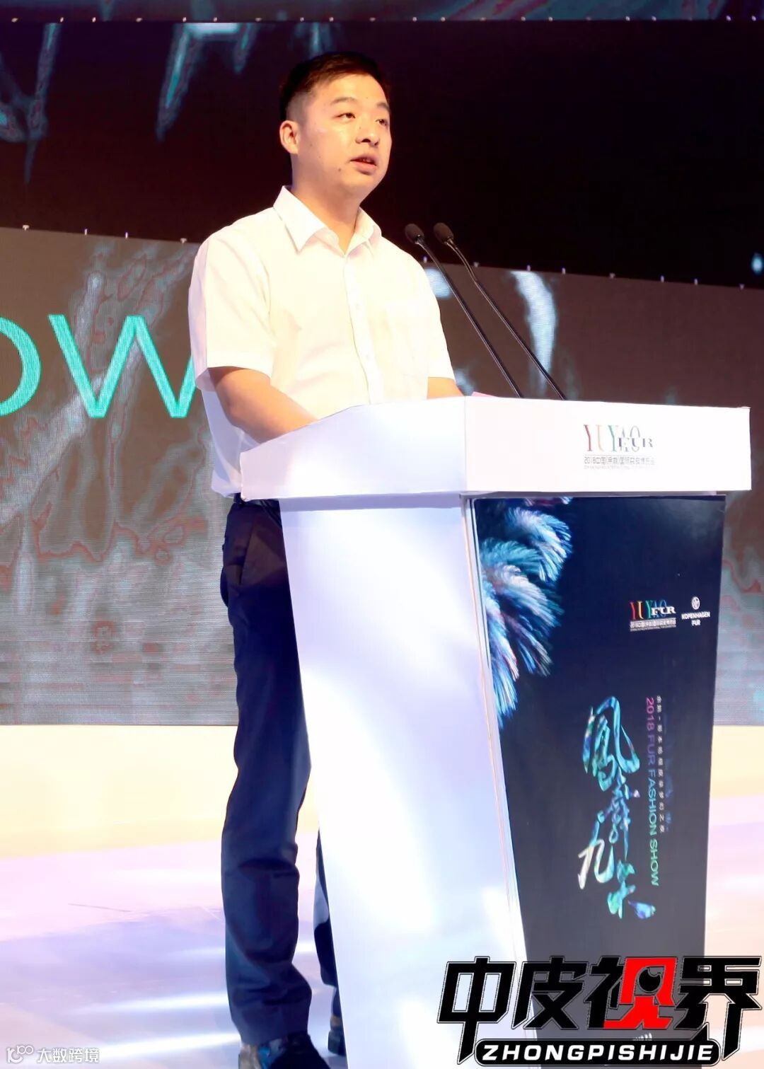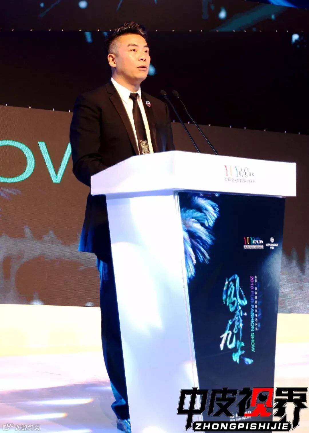 上海纺织集团(华东有限公司)总经理汤春方先生,山东恒泰皮草制品有限公司董事长李效三先生,吉林省裘皮商会会长梁振和先生,哥本哈根皮草质量技术经理Bjorne(比约恩)先生,余姚市裘皮商会会长干一峰先生,余姚裘皮城业主委员会主任、兽王集团董事长冯春海先生,中国畜产品流通协会副会长徐家宝先生为获奖品牌颁奖。