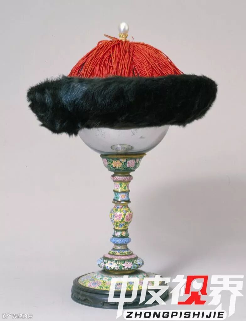 清朝皇室对貂重视到什么程度呢?举个例子,貂甚至出现在象征皇权的朝冠上。比如这个熏貂皮皇帝冬吉服冠,这个吉服冠帽檐用了紫貂,冠顶的金簪花点翠金座上镶嵌了一颗大珍珠。整个冠的造型简洁典雅,但又不失威严。