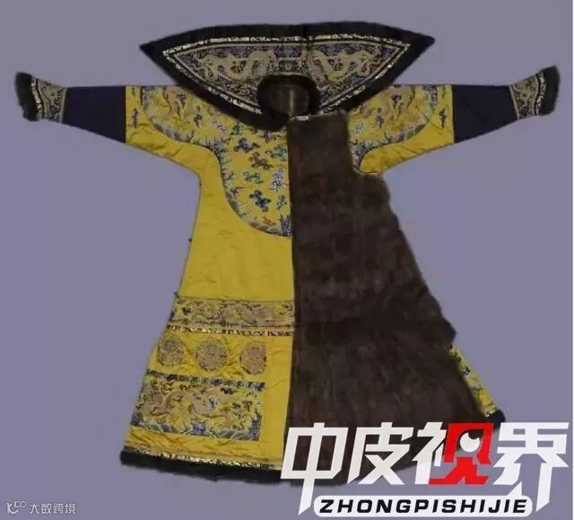说完了头上戴的,我们来看看皇帝穿的貂皮大衣什么样?康熙皇帝的这件明黄地彩云金龙妆花缎貂皮朝袍是皇帝朝服中的上品。