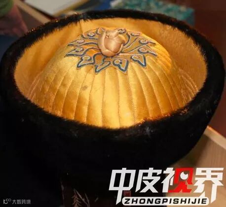这件貂皮马褂内饰拼花貂皮里,在明黄色江绸地上,织暗花海水江崖、“卐”字和飘带等纹样,寓意“江山万代”。看来皇帝也不能随心所欲,就算衣服的花纹也要遵循礼制。