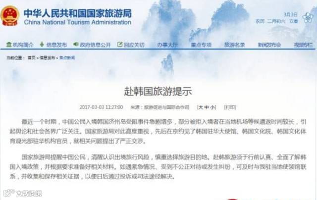 中国国家旅游局称:最近一个时期,中国公民入境韩国济州岛受阻事件急剧增多,部分被拒入境者在当地机场等候遣返时间较长,引起舆论和社会各界广泛关注。所以,提醒中国公民,清醒认识出境旅行风险,慎重选择旅游目的地。