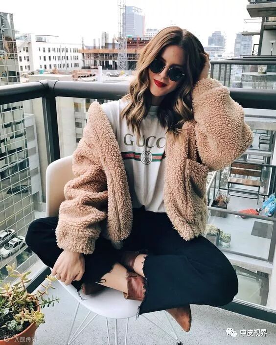 短款的泰迪熊外套显得很年轻俏皮,下身搭配喇叭裤或者修身的铅笔裤都能很显瘦,而且短款的长度提升腰线和臀线,可以让你的下半身看起来比例更长哦。