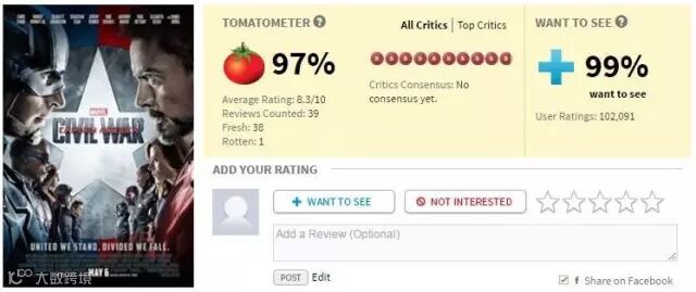 目前北美权威影评网站烂番茄新鲜指数高达97%,绝赞好评!