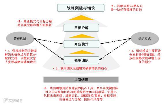 这个框架的核心点就是一切管理要为增长服务。其实管理不在于有多漂亮,而在于两个本质:“服务增长”、“激发奋斗”。只要是服务增长,激发奋斗,不管多土,也是对的,只要不是服务增长,激发奋斗,不管多漂亮,都是错的。