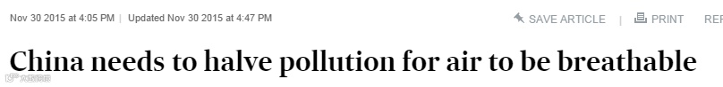 金融评论报:《中国需要减少一半污染才能有可呼吸的空气》
