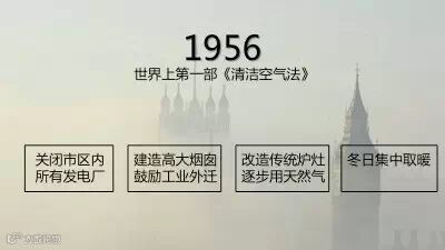 1956年,伦敦用一部法律打响了与雾霾的第一战。在这部《清洁空气法》中,出现了四条尤为重要的空气治理方法: