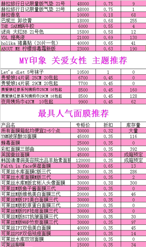 根据微信平台每天公布的现货及折扣报表挑选自己需要的商品。