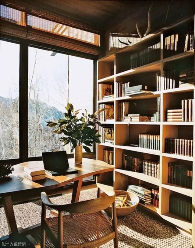 明媚亮眼的采光,整齐布落的书架,书房可以有巨大的落地窗。