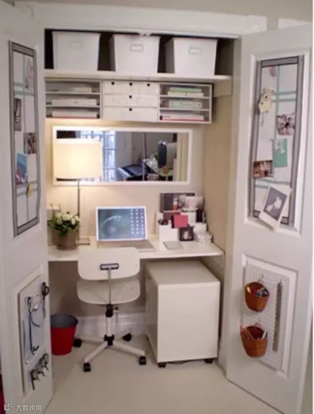 隐藏在柜子里的小书房,收纳是关键。