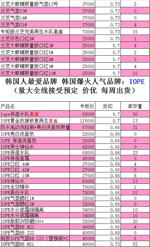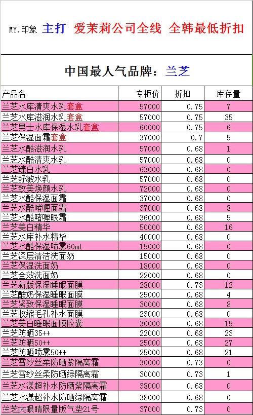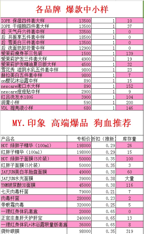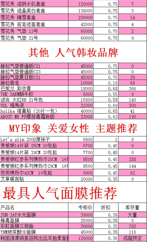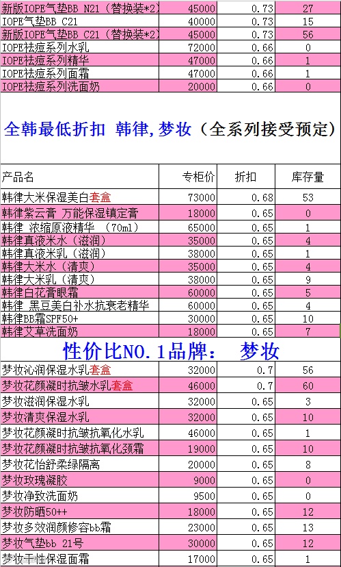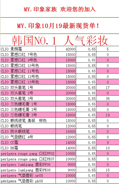 1、关注微信订阅号——myyinxiang520(my印象韩妆studio),回复数字一查看我们最新的现货折扣表。(刚关注微信不显示现货折扣表的亲,请查看历史消息,搜索便可。)