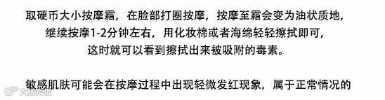 这款按摩膏质地很细腻 带一点点磨砂的感觉,但是按摩着就会被按摩吸收,敏感肌肤完全不用担心颗粒对皮肤伤害,这个敏感肌可以放心使用,我们彩妆师轩轩脸上一块地方特别敏感,但用这款按摩膏完全无负担很温和。