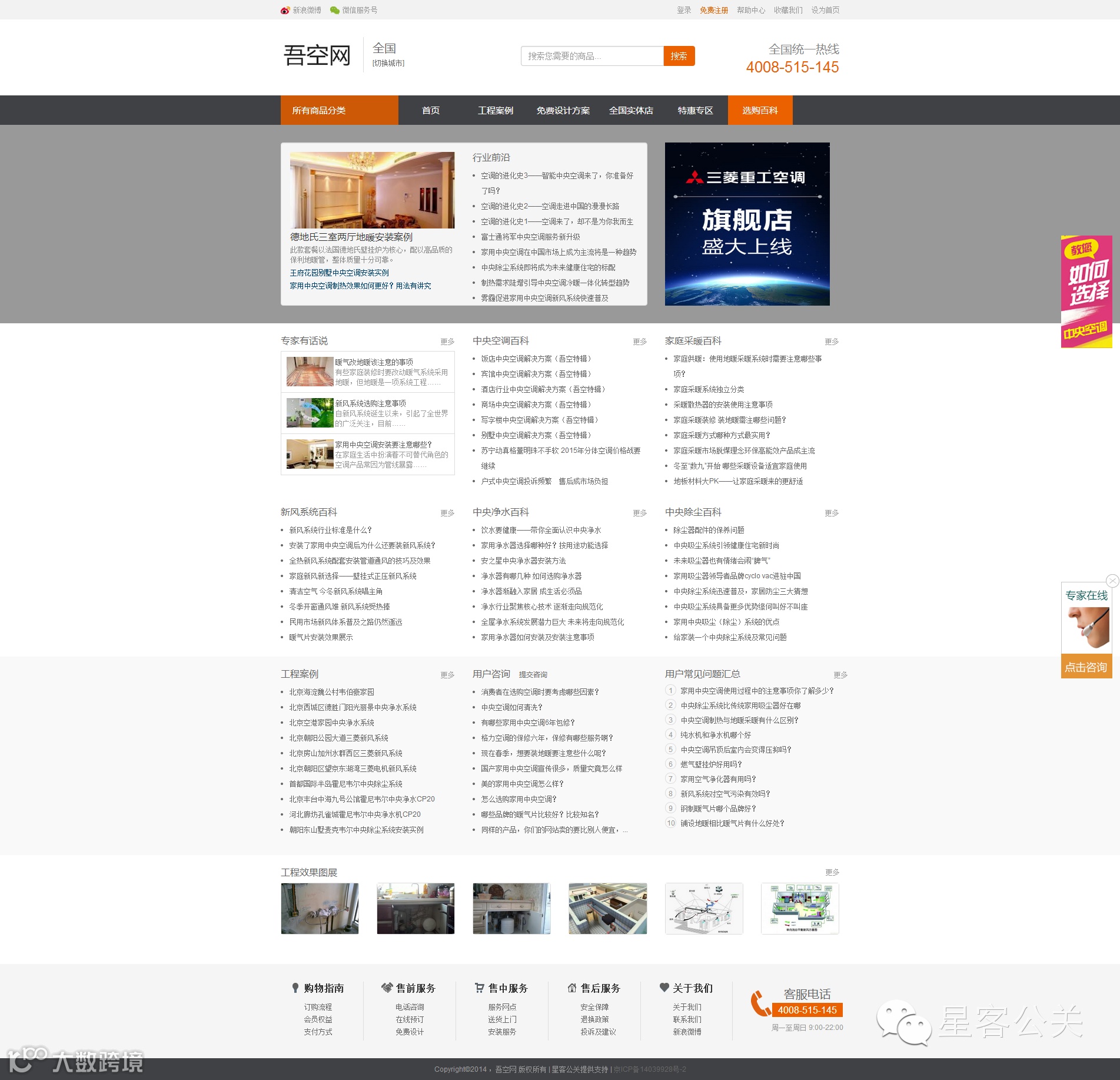 北京菱电克尔机电设备有限公司运营的吾空网是国内最专业的室内家居(集成暖通)系统电子商务网站,基于公司十三年在暖通领域的深耕细作与遍布全国数十个城市的实体网络,将传统的家用中央空调、家庭采暖、新风系统、中央净水与热水、中央除尘等传统大宗家居商品进行电商化,通过在线服务快速响应,线下实体服务相结合的方式,为广大家庭提供便捷安全放心的设计与安装服务。