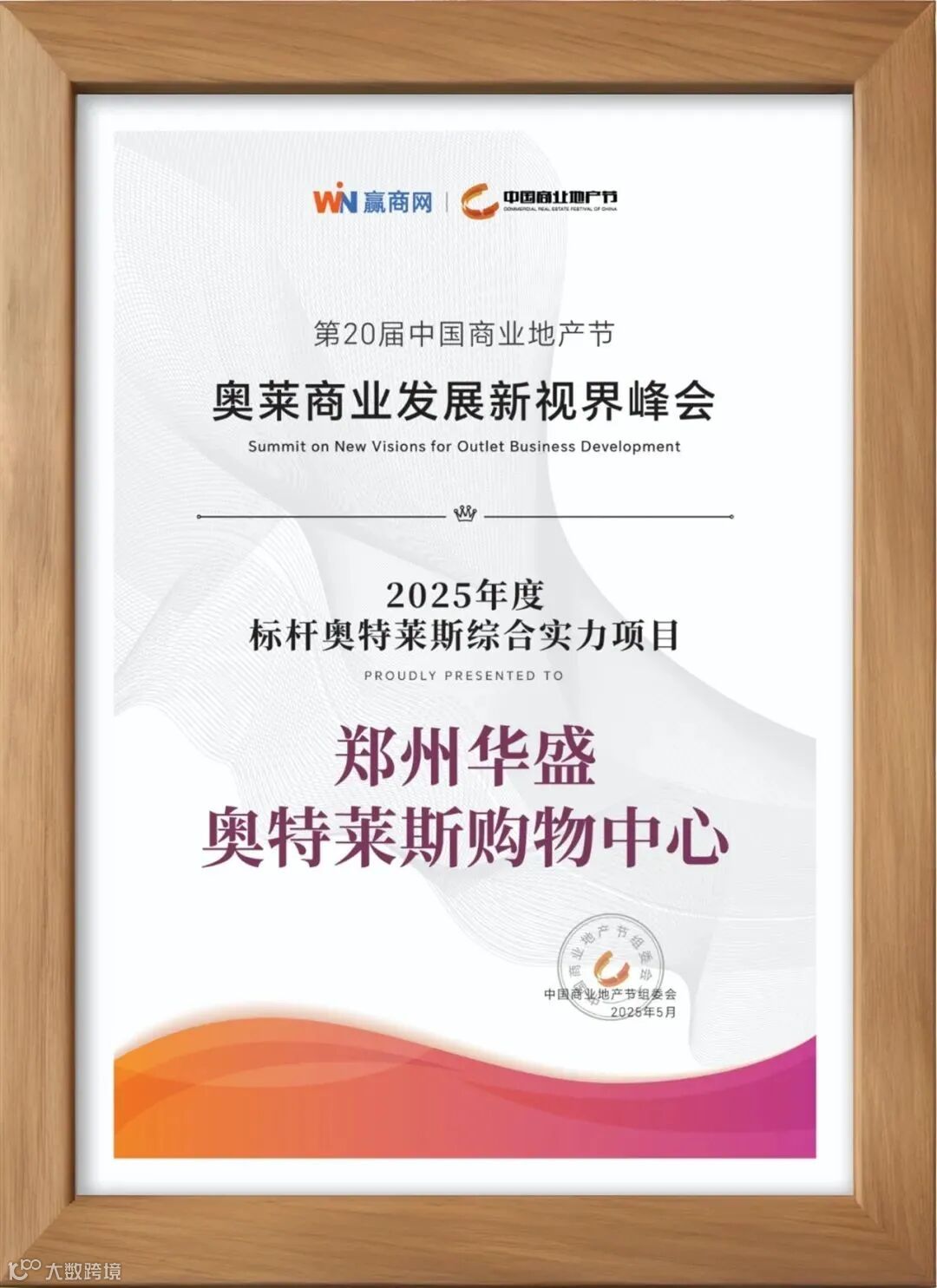 5月28日至29日,第20届中国商业地产节在广州盛大举行。众多行业标杆奥莱开发运营商领袖、专家学者汇聚一堂,与业界同仁深度探讨“新奥莱”发展机遇,共拓商业格局,探寻企业长效增长之道。在29日的颁奖典礼上,华盛商业旗下郑州华盛奥特莱斯荣膺“2025年度标杆奥特莱斯综合实力项目”。郑州华盛奥莱自2017年开业以来,项目定位Outlets Mall主题综合体,融合“品牌折扣+时尚生活”模式,集大型现代购物中心与全客层时尚生活中心功能于一体。此次获奖,再次体现市场对其认可。