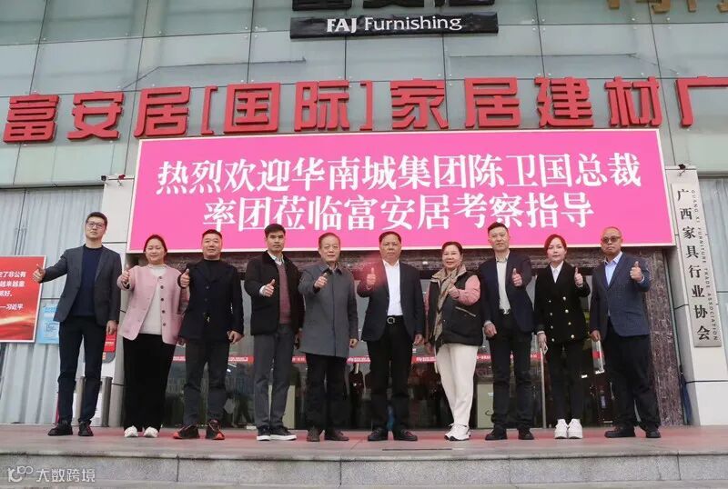 2月19日,华南城集团副总裁陈卫国率招商运营总经理刘晓光、招商总监刘星灼,以及南宁华南城总经理刘阳谋、副总经理展建国、招商副总监林静静等到富安居进行考察交流。富安居当执董事叶健、董事庞雪妮及副总裁陈聪聪热情接待。双方就南宁华南城拟引入富安居产业落地合作事宜进行沟通交流。家居建材产业作为华南城重点培育的核心业态之一,南宁华南城凭借其得天独厚的地理优势,已建成并运营着17万平方米的家居馆,为产业发展奠定了坚实基础。同时,华南城集团将持续加大对南宁家具产业的投入力度,期待与富安居家具产业促进局建立深度合作关系,共同推动区域家具产业的繁荣发展。