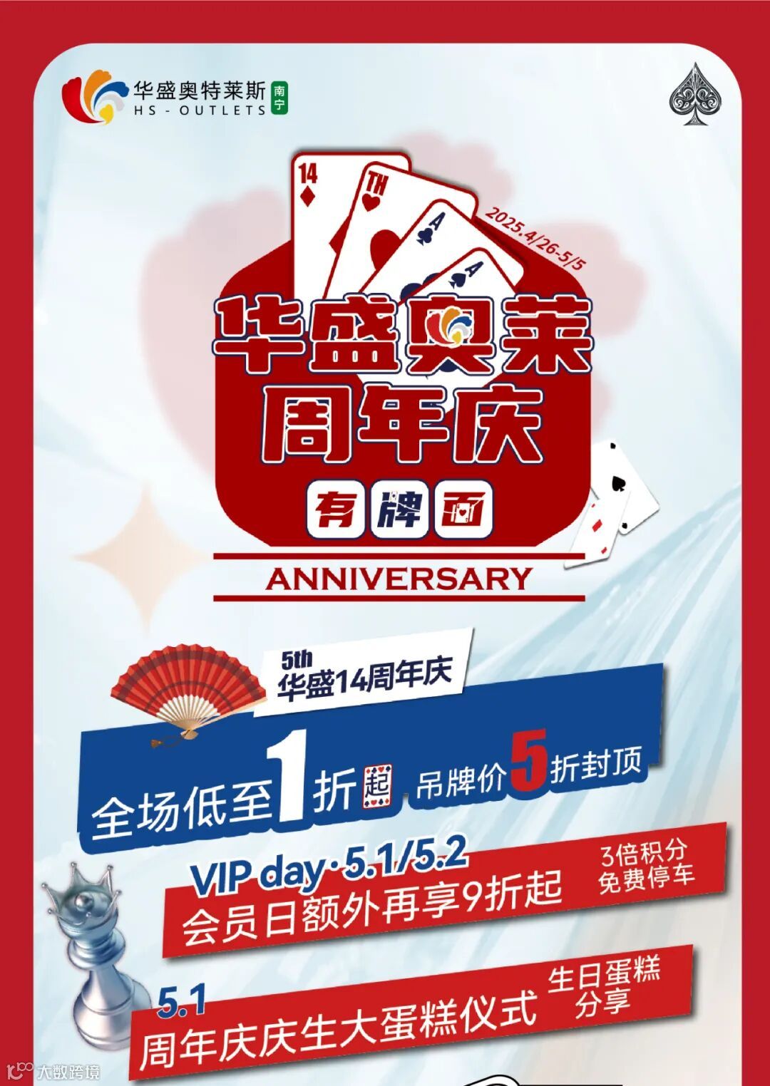 燃爆全城!南宁华盛奥特莱斯14周年庆,全场1折起+会员日额外再享9折+巨型蛋糕免费开炫!
