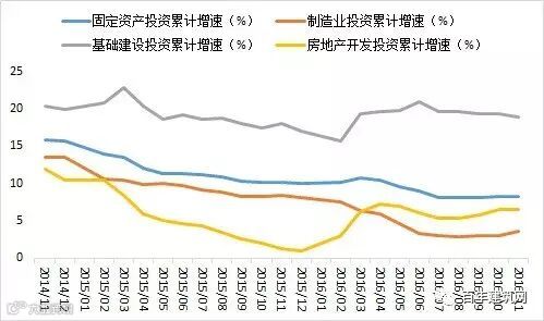 在供给侧结构性改革不断推进和稳增长政策效应持续释放的共同作用下,2016年末固定资产投资增速呈现企稳回升的苗头。但同时也要看到,国内外经济环境依然复杂严峻,投资增速企稳回升的基础尚不牢固,如产能过剩和市场需求不振的双重压力仍制约着经济发展,企业投资信心整体偏弱,未来一年固定资产投资增速预计将有小幅下降,增速或在7.5%-8%左右。基建投资今年以来一直保持在15%以上的平稳较快的增长态势,是政府稳投资的主要利器。未来基建新开工项目放量、PPP项目逐步落地、融资平台松动,基建投资有望保持较高增速。但目前来看政府财政透支情况严重,基建投资体量较大,能否有效激发民间投资热情是保持基建投资平稳高速增长的关键。