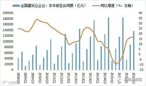 图2 建筑业新签合同额及增速