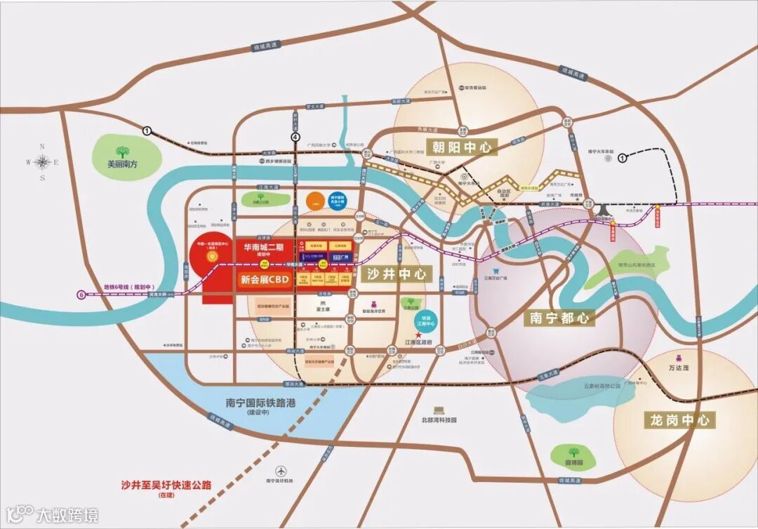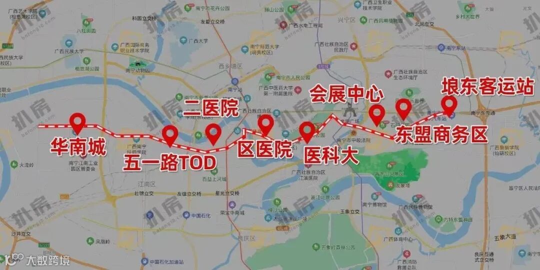 地铁6号线主要串联起江南与青秀两大老城区,路线途径几乎都是南宁人流量集中、人口密度很大的区域。并且,沿线的华南城、五一路、仙葫甚至三岸等板块都将受益。