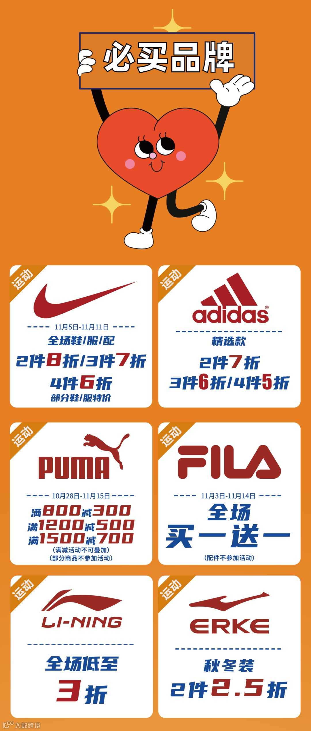 双十一血拼攻略 | 华盛奥特莱斯斐乐买1送1,NIKE4件6折!阿迪4件5折!超多大牌,抵值折扣在等着你!