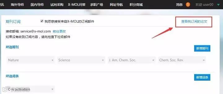 第二种方法,直接用浏览器访问http://www.x-mol.com/journal/subscribe,如果没有登录,需要先登录。