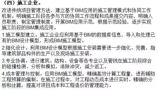 (五)加强工程质量安全监管、施工图审查、工程监理、造价咨询以及工程档案管理等工作中的BIM应用研究,逐步将BIM融入到相关政府部门和企业的日常管理工作中。