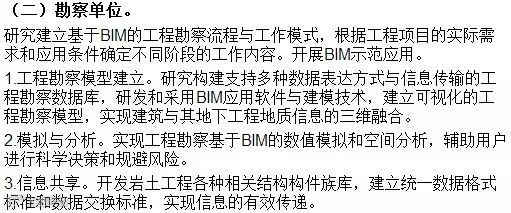 (二)梳理、修订、补充有关法律法规、合同范本的条款规定,研究并建立基于BIM应用的工程建设项目政府监管流程;研究基于BIM的产业(企业)价值分配机制,形成市场化的工程各方应用BIM费用标准。