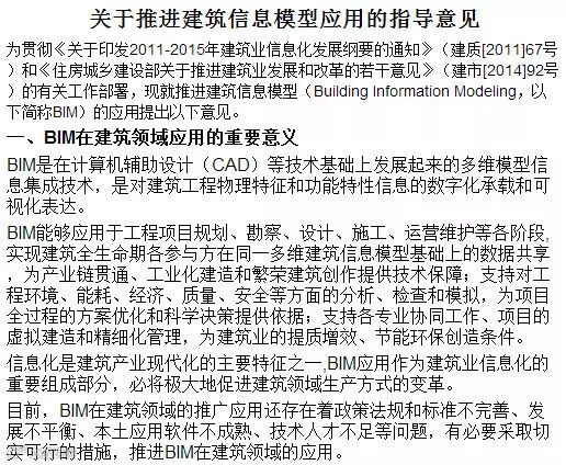 为指导和推动建筑信息模型(Building Information Modeling,BIM)的应用,我部研究制定了《关于推进建筑信息模型应用的指导意见》,现印发给你们,请遵照执行。