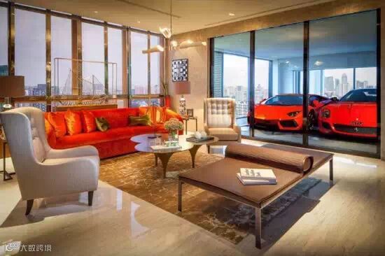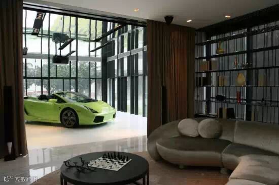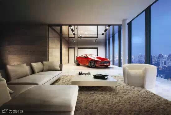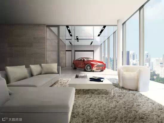 于是设计师们为每套公寓独立设计了一个车库,车库与客厅仅仅相隔了一层玻璃,这时你的豪车已成为家中的一道风景。。。