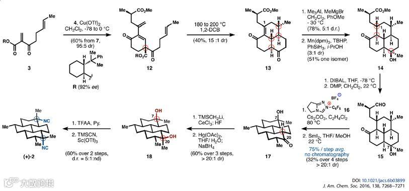 什么?不服?那咱们就抛砖引玉讲讲最近的这篇JACS关于海洋二萜类Diisocyanoadociane的全合成吧。