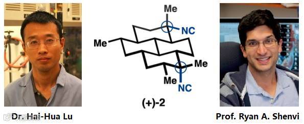这位80后印度裔小伙子本科师从PSU的大师Raymond Funk,这位老兄可是实打实的获得过Arthur Cope奖的。再往上数,Shenvi的祖师爷可以追寻到独孤前辈Woodward。博士阶段跟着Scripps的Baran也是大显身手,完成了Chartelline C、Cortistatin A等非常具有挑战性的工作。博后阶段在传说级大师Corey门下打怪挣经验升级,随后顺利回到老东家Scripps任教职。血统纯正,大家献上膝盖吧。真正令独立工作后的Shenvi教授名声大噪的是那篇Nature[1],引用ScienceDaily网站的原话叫做“解决了一个化学界的世纪难题”(Century-Old Chemistry Problem Solved)[2],具体就是发明了一种[异腈试剂+路易斯酸]的方法完成叔醇的SN2取代(本文中最后一步也用了此方法)。另一个比较代表性的工作是其8步反应高效克级合成(−)-jiadifenolide(第一作者同样也是Hai-Hua Lu博士)[3]。