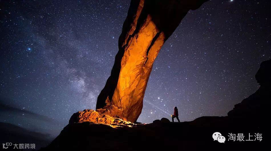 摄影师Manish Mamtani到拱门国家公园夜拍,不过在拍摄过程中遇到了云层干扰,回到车里等候大约2个小时夜空终于放晴了。我们现在看到的这张照片其实是自拍,相机当时被放在车里。