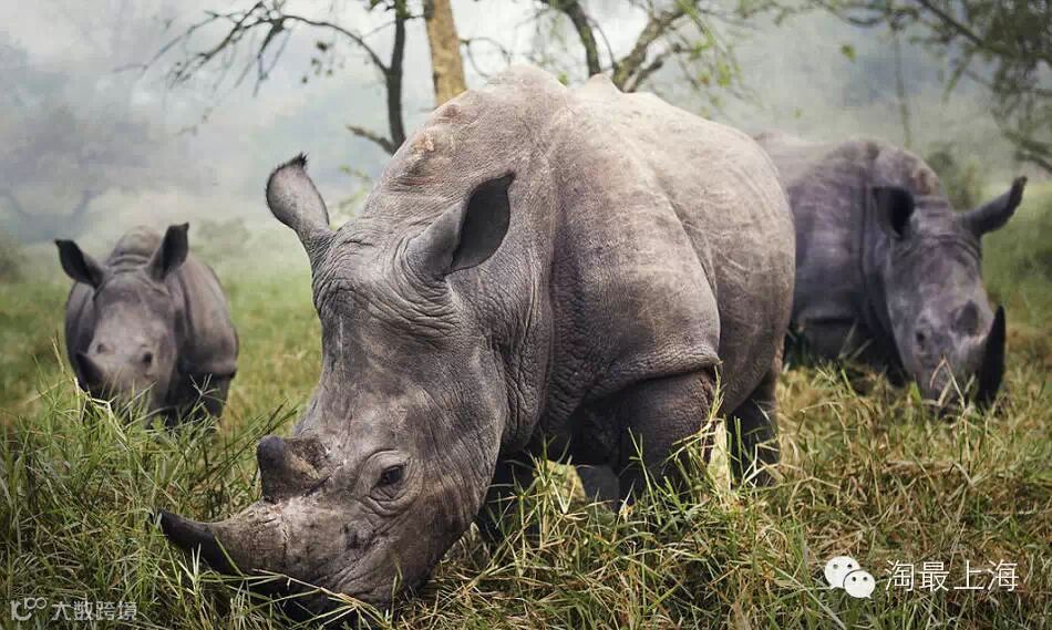 考虑到安全问题,摄影师只能躲在30英尺外的草丛里拍摄,但怎么也拍到想要的画面。但有心栽花花不开,无心插柳柳成荫,隔天早上起来,这三只犀就出现在镜头前。