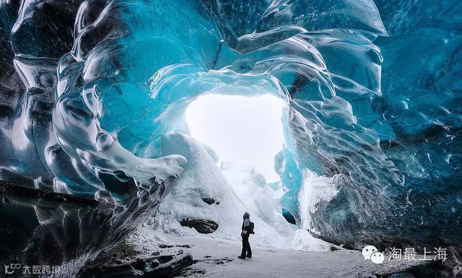 地点:岛瓦特纳冰川的一个冰洞。冻结时间,冰岛瓦特那冰川中的冰穴。