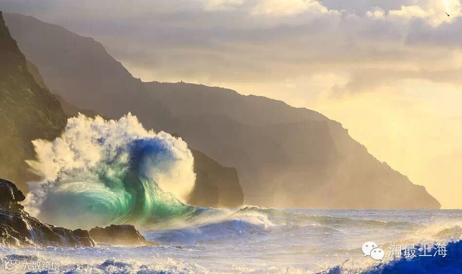 夏威夷的巨浪。夏威夷可爱岛西北岸开始涨潮,巨大的海浪拍打在海岸上。秋日时分的夕阳与水汽营造出朦胧光线,然而真正惊喜之处却是画面右上角突然闯进来一只飞鸟,这个小生命不仅让画面变得更加平衡,也让人想起平凡之中隐藏有不平凡的道理。