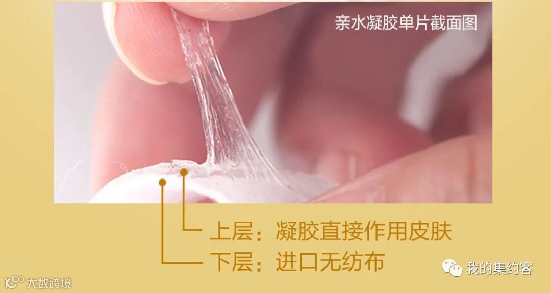 根据眼部肌肤问题精心设计的时尚美观造型,同时确保功效能完全利用,优美线条裁剪,保证水凝胶精华释放 其功效,粘性好亲肤效果非常服帖,不易滑落,随时随地轻松享用。使用进口无纺布布料,双向弹力,舒适度好,与肌肤敷贴,不会引起紧绷不适感。普通无纺布布料,单向弹力,舒适度一般,与肌肤敷贴会引起紧绷不适感,
