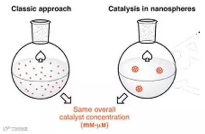 新的催化纳米球概念的灵感来自于天然酶的工作原理。这些酶在预定的“口袋”位置结构目标分子,在空间上接近它们的活性位点,从而有助于高效化学转换。该团队的研究人员合成的“纳米容器”模仿了生物酶的性质,并且通过使催化剂达到非常高的局部浓度,进一步增强了催化性能。