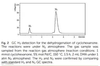 通过气相,可以清楚地监测到反应中氢气产生,充分证明催化脱下的氢形成了H2直接释放出来。