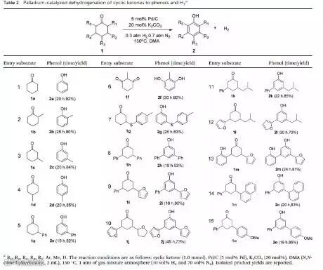 华东理工大学刘仁华课题组在《Chemical Science》报道了一个以前不受重视的普通的商业化的Pd/C和H2组合,催化环己酮和2-环己烯酮衍生物脱氢合成苯酚类化合物,而H2作为唯一的副产品。
