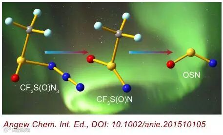 该研究不仅为自由基氮烯化学(Nitrene Chemistry)增添了新一类物种即亚磺酰氮烯,而且从光谱分析得出其独特的单重态电子特性。这与和其具有近似结构的基态三重态羰基氮烯完全不同,亚磺酰氮烯的单重态电子组态源于硫元素的孤对电子与邻位缺电子氮烯中心的共轭。此外,新颖无机共轭小分子OSN不仅是潜在的星际物种,实验获取的光谱信息为其在宇宙中的微波探测提供了重要标准数据,同时也为探索其作为基元分子在合成中的潜在应用提供了可行途径。这一研究成果发表于《Angew Chem. Int. Ed.》上。