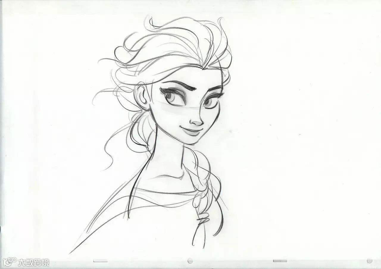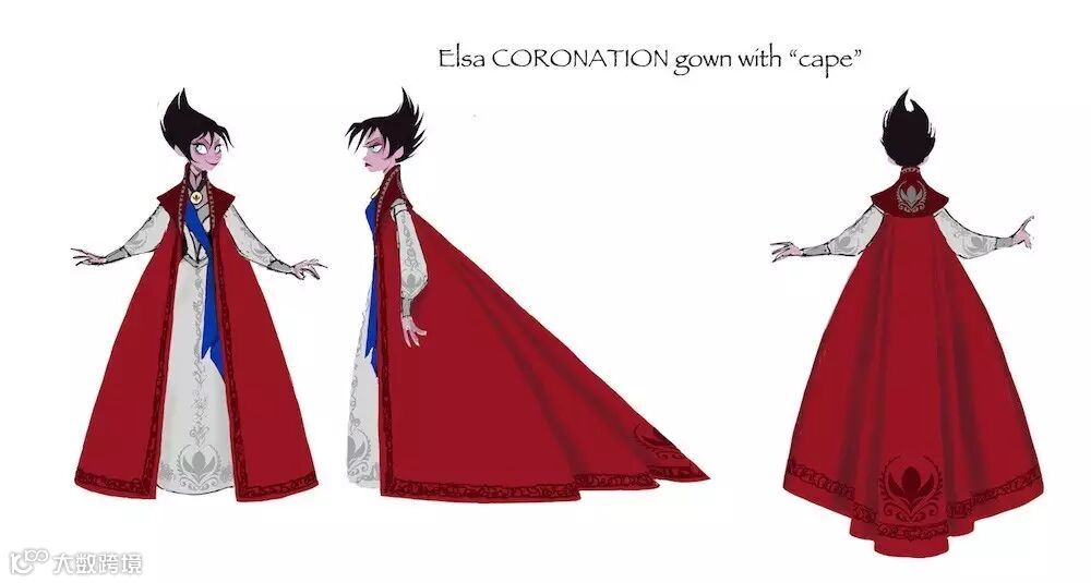 4. 从初步的设想、概念图到最终确定的公主形象,要经历一个十分漫长而坎坷的修改过程,有时甚至会因为故事情节设定的变化而全部推倒重来,这里以艾莎的创作为例。大家知道,《冰雪奇缘》的故事灵感来自安徒生经典童话《白雪女王》,因此在早期的版本中,艾莎被设定为一个典型的反派角色,这也是迪士尼公主电影一贯擅长的做法。