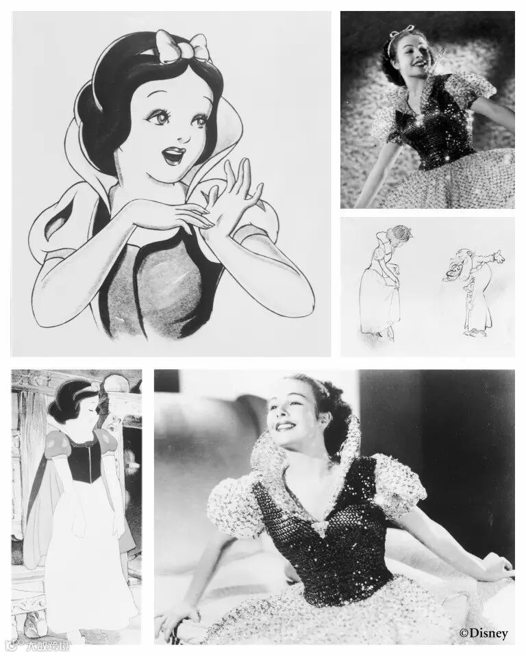 在上世纪30年代,由于没有电脑和先进的工具,制作一部动画电影无疑是一项艰巨而浩大的工程。每一秒动画的制作都需要约24张手绘画稿,制作《白雪公主与七个小矮人》 时共绘制了200万幅手稿。为了让白雪公主的荧幕形象更加生动,当时华特起用了一位14岁的女孩Marge Champion作为真人模特,为动画师们创作白雪公主的外形和动作作参考,而这种起用真人模特作为动画形象参考的做法也一直被延用了下来。(注:Marge Champion如今已经90多岁高龄,她是美国国宝级舞蹈家、编舞者,她的人生犹如白雪公主般多姿多彩,时至今日仍然坚持舞蹈)