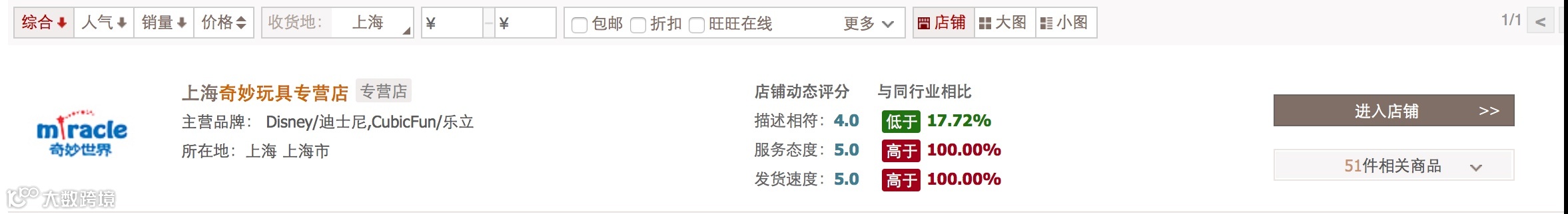首先,进入天猫首页,搜索“奇妙玩具专营店”。