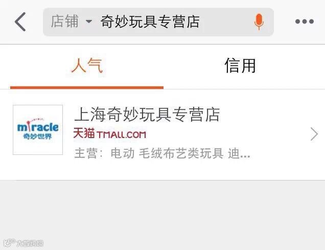 如果用手机客户端也一样,打开淘宝或者是天猫APP,在搜索框中选中店铺,输入“奇妙玩具专营店”就可以shopping啦~